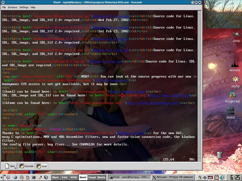 | SDLcam-0.7.3.tar.gz | Source code for Linux. SDL, SDL_image, SDL_ttf 2.0+, and libxml2 required. I suggest using the latest philips webcam driver. | Sat Aug 24, 2002 |